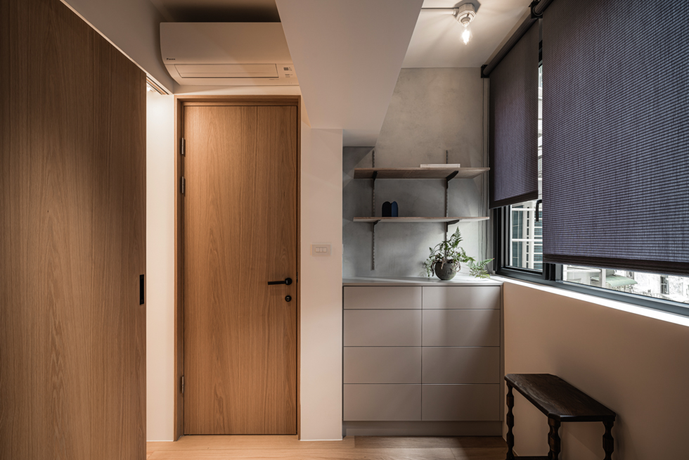 設計師藉由二條串連空間的廊道及推拉門的區隔,