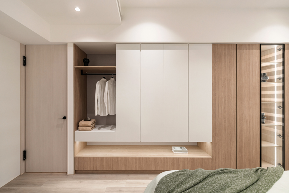隔柵為空間增添靜謐氛圍 石材的紋路猶如雲煙繚繞 深色的傢俱增添沉穩氣質 木紋將自然的氣息帶入整個場域 勾勒出身心的綠洲 在簡約之中品味雅緻